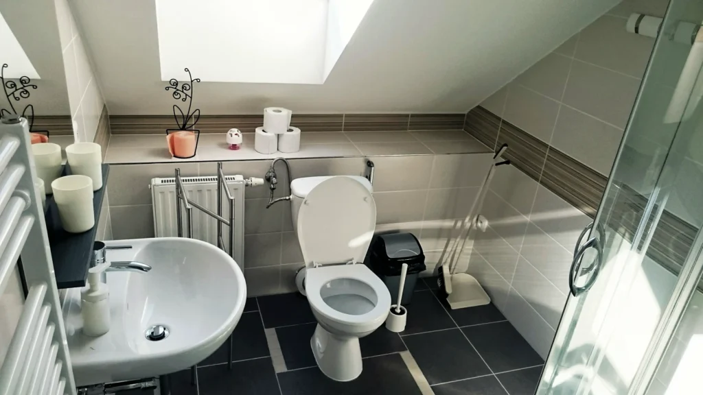 K apartmánu patří vlastní koupelna se sprchovým koutem. Díky propojení s wellness zónou a bohatému zázemí pro volný čas nabízí Apartmán Wellness dokonalou kombinaci relaxace a komfortu.